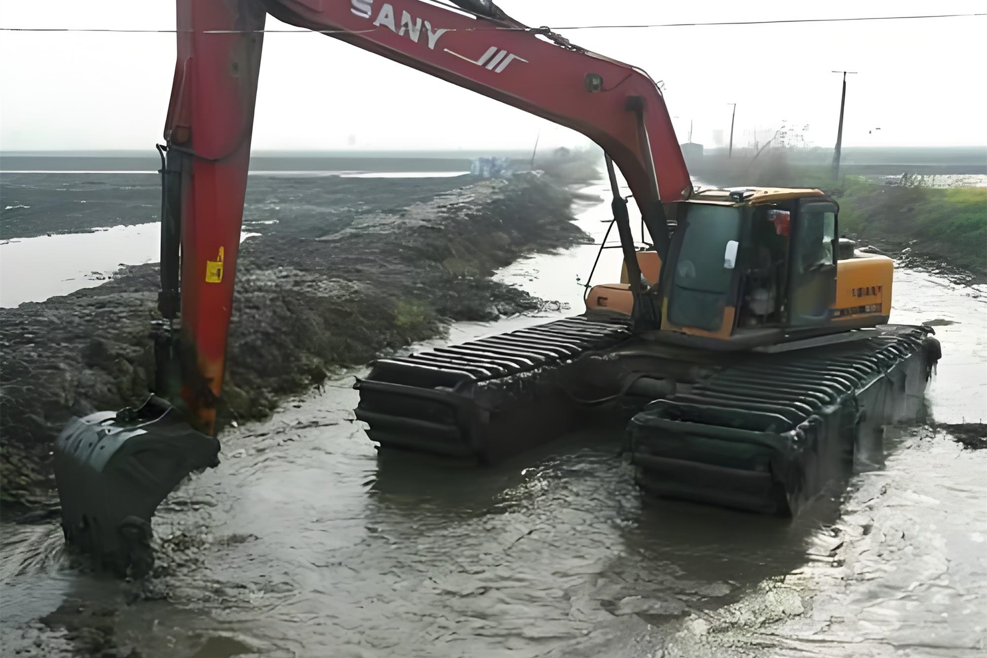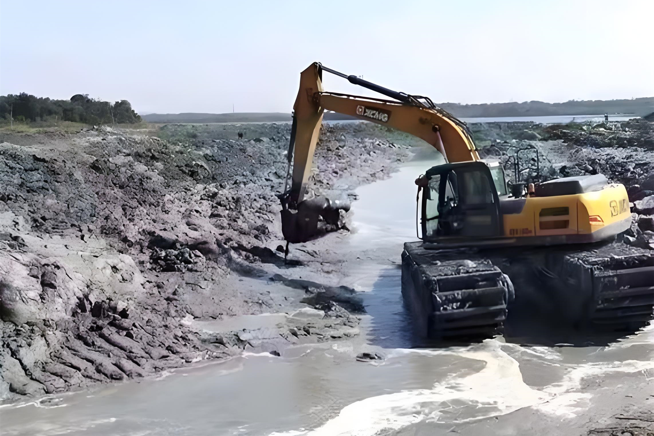 淤泥的粘稠度也很影響。稀泥像粥一樣,挖斗一挖就能提上來(lái),速度快;要是淤泥里混著(zhù)硬土塊、碎石,甚至有樹(shù)根纏繞,挖斗得反復撬動(dòng),還容易卡料,效率起碼打五折。